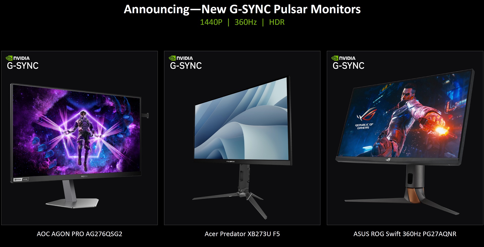 Как подчёркивает Nvidia, по своим возможностям новые платформы MediaTek не будут отличаться от аппаратного модуля G-Sync и предложат тот же набор функций. Здесь упоминается поддержка переменной частоты обновления, 12-битной точности цвета, технологии Reflex Analyzer и другого. Дебютными мониторами с полноценной поддержкой Nvidia G-Sync на платформе MediaTek стали AOC Agon Pro AG276QSG2, Acer Predator XB273U F5 и ASUS ROG Swift 360Hz PG27AQNR.