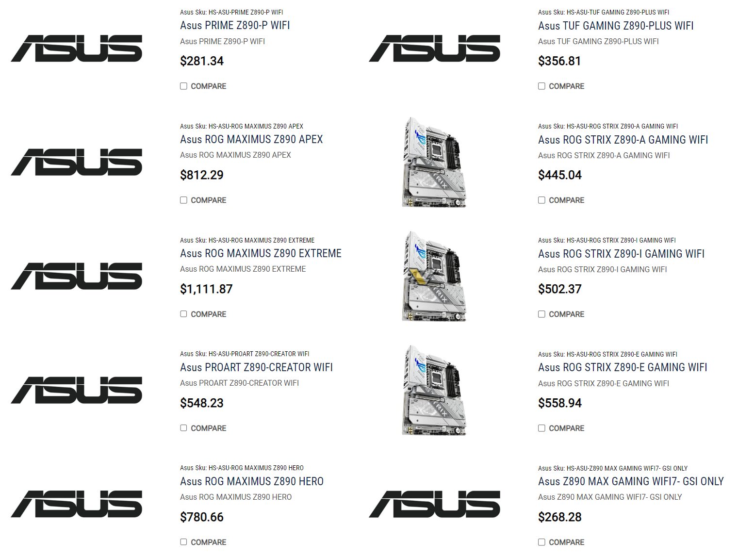 Подготовка к релизу новой десктопной платформы Intel набирает обороты. В следующем месяце в продажу поступят первые процессоры линейки Core Ultra 200 (Arrow Lake-S), а также материнские платы к ним, выполненные на базе логики Z890. И несмотря на то, что до официального релиза остаётся ещё несколько недель, один американский ритейлер уже раскрыл ориентировочные цены плат LGA1851 в исполнении компании ASUS.