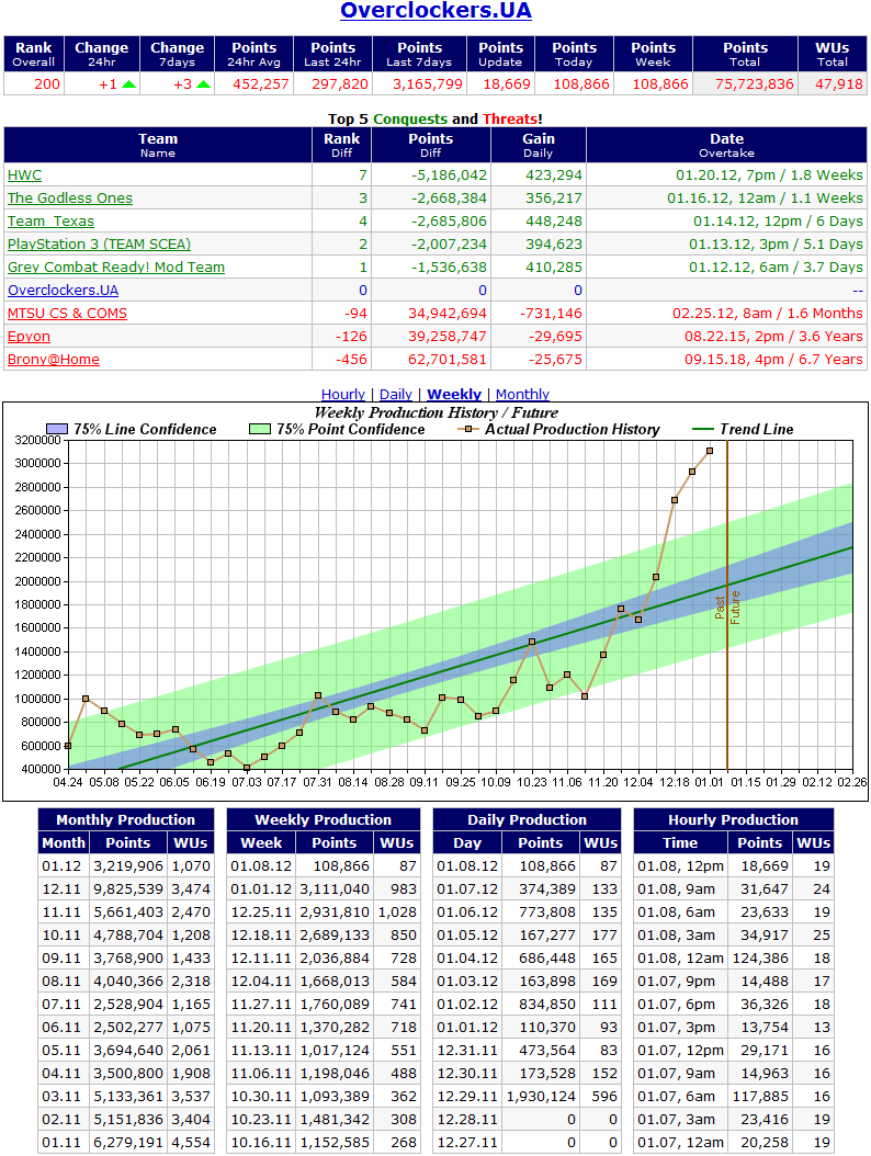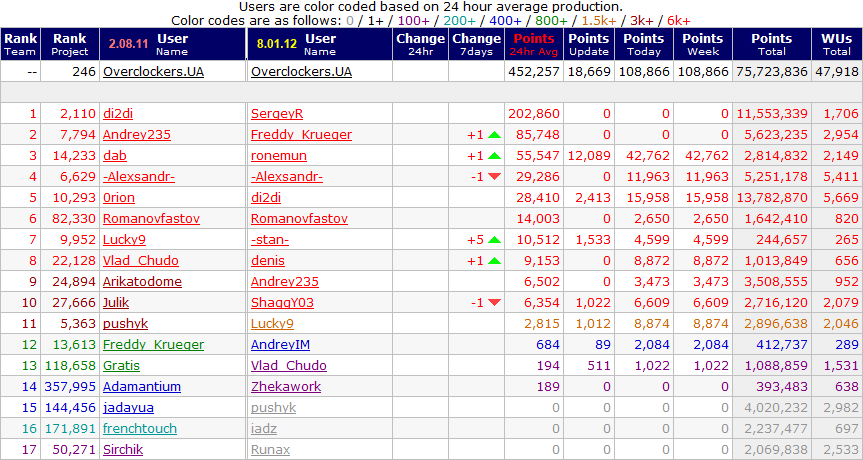 С момента предыдущего знаменательного события – входа Overclockers.UA в топ-250 команд F@H – прошло немногим более 5 месяцев. Учитывая возрастающую сложность продвижения вверх в общем зачёте, наши фолдеры, очевидно, увеличили обороты.