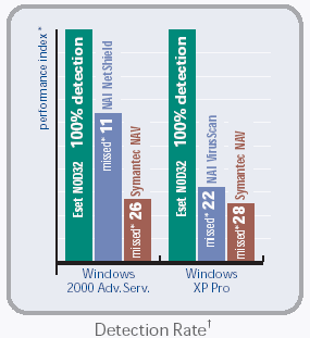 NOD 32 - также единственный антивирус в мире, который уже более 5 лет, согласно тестам Virus Bulletin не пропустил ни один вирус, активный на момент тестирования.