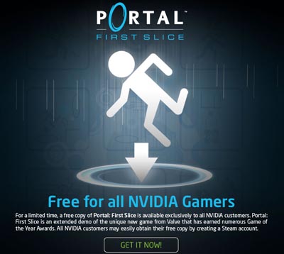 Известная компания Valve достаточно давно сотрудничала с ATI (позже с AMD) и мы еще помним те счастливые времена для обладателей видеокарт серии Radeon, когда Half-Life 2 лучше всего чувствовал себя на этих картах. Разработчики уверяли в бесконечной преданности ATI и в оптимизации всех своих игр под видеокарты канадско-американской компании. Но в последнее время объединенная ATI/AMD сильно сдала свои позиции, как на процессорном рынке, так и в секторе видеокарт. После недавно проведенного опроса среди пользователей Steam оказалось, что большинство используют видеокарты NVIDIA. В связи с такой ситуацией Valve решила изменить приоритеты и уже сейчас все пользователи любой видеокарты серии GeForce могут скачать пробную 7-уровневую Portal: First Slice. И, скорее всего, после этой «первой ласточки», количество бонусов будет увеличиваться. А ведь еще недавно подобные подарки предлагались пользователям Radeon, в частности к видеокартам 2ххх серии в комплекте шли талоны с серийными номерами для скачивания игр из системы Steam.