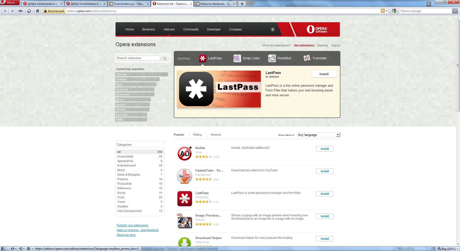 С момента появления первой публичной тестовой версии количество доступных пользователям расширений существенно увеличилось и на момент написания данной заметки достигло 200 штук.