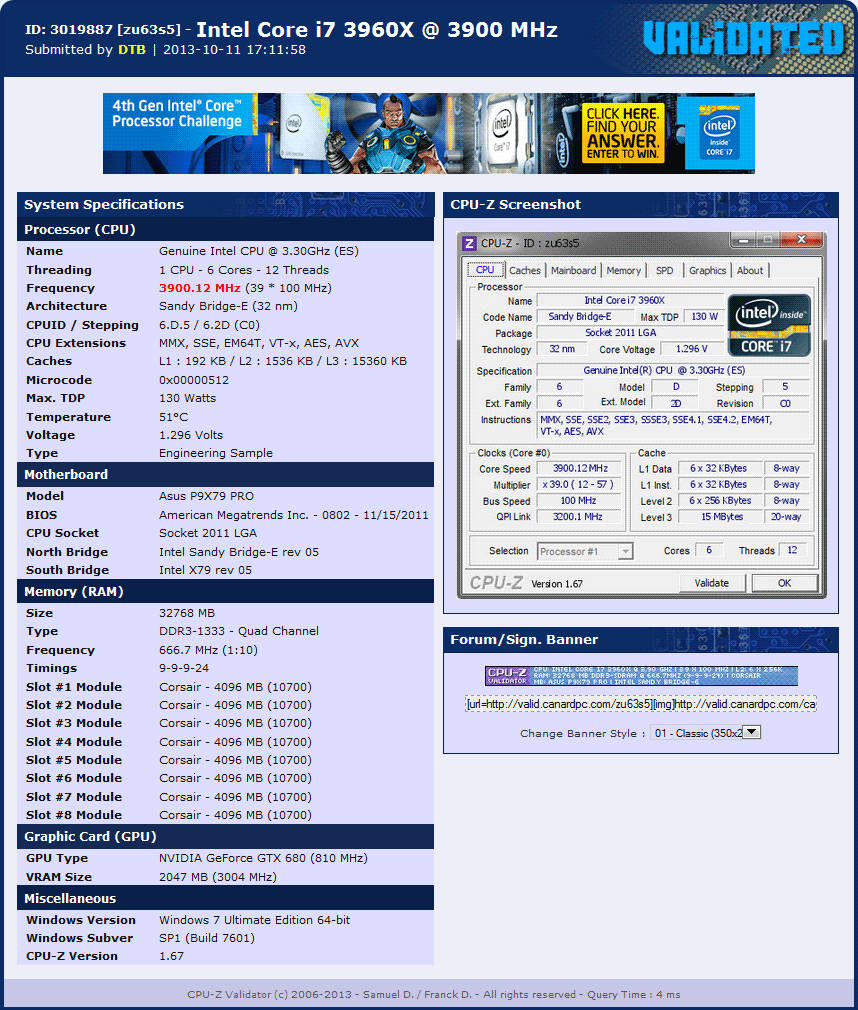 Спонсорская поддержка корпорации Intel, заинтересованной в продвижении процессоров Intel Core 4-го поколения, позволила французскому сайту Canard PC внести изменения в интерфейс страниц онлайн-базы CPU-Z. Процедура валидации CPU-Z является обязательным условием для подтверждения результатов во многих дисциплинах HWBot.org.