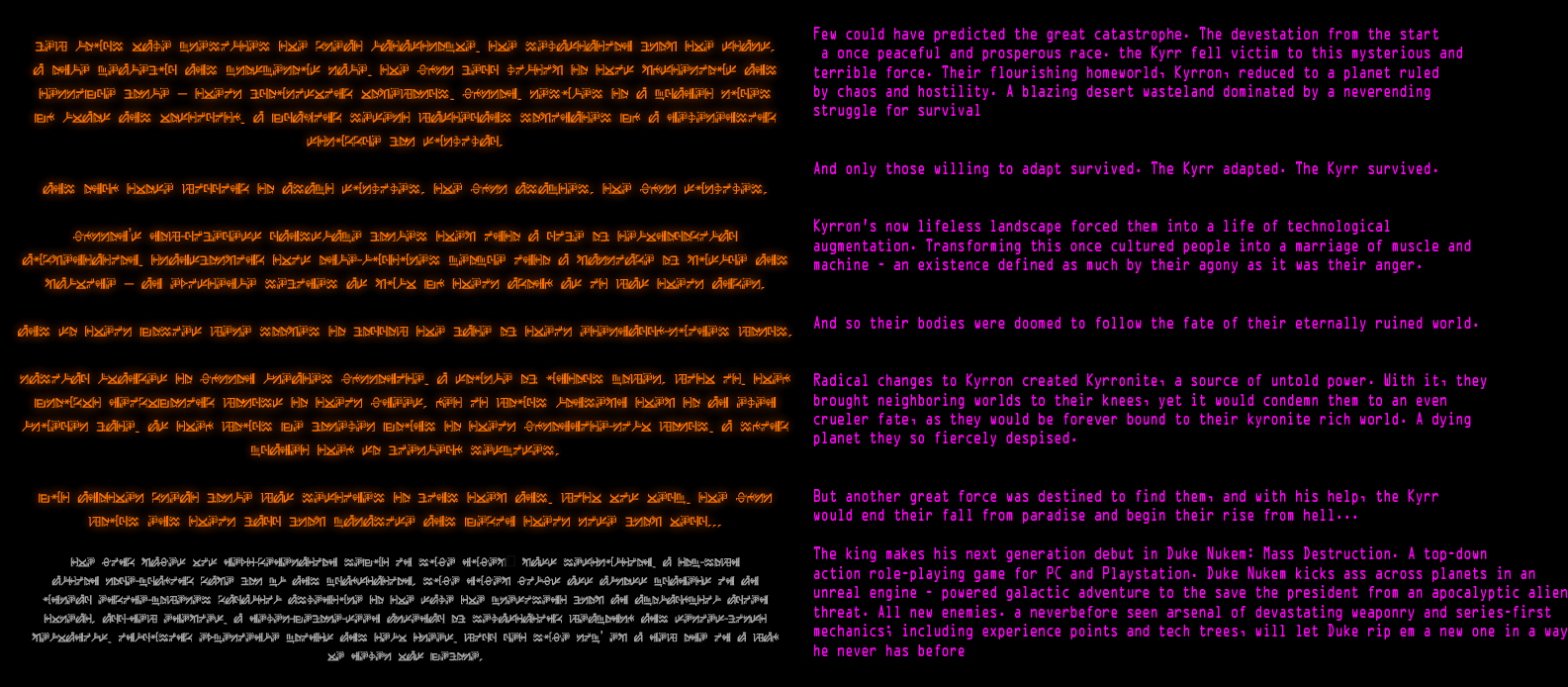 На тизер-сайте новой части Duke Nukem alloutofgum.com размещено изображение любимой жевательной резинки Дюка Kick-Ass и ведется обратный отсчет до даты анонса (25 февраля). Нетерпеливые фанаты раздобыли подробности о Mass Destruction: