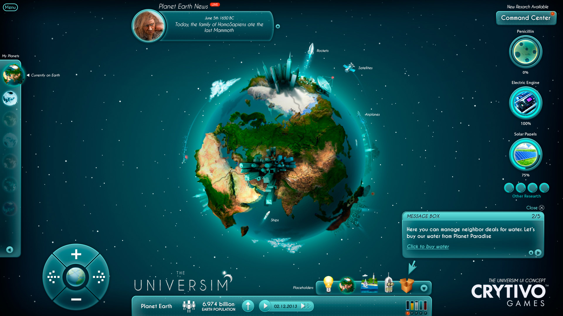 Игроку предстоит скорее определять векторы развития общества, нежели строить отдельные здания. В его силах предотвратить глобальные катастрофы, а то и полное уничтожение планеты. В ходе колонизации космоса геймеры столкнутся с различными проблемами: низкими либо высокими температурами, отсутствием на планетах атмосферы, нехваткой воды и т. д.