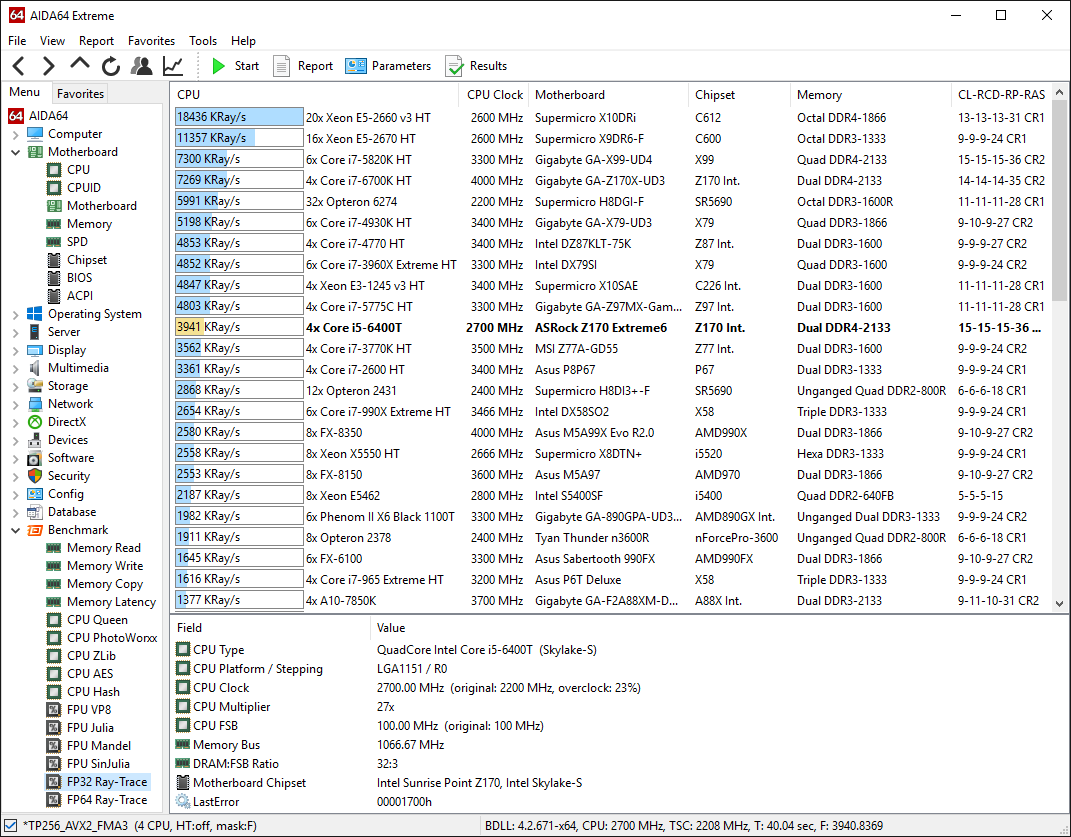 - добавлены 32- и 64- битные бенчмарки на основе технологии трассировки лучей (с использованием AVX и FMA);