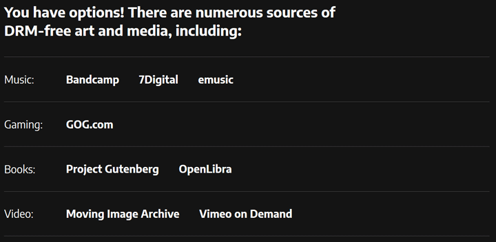 Мы запускаем инициативу FCK DRM, что бы каждый пользователь понял, что такое DRM и какие преимущества приходят с использованием DRM-free контента. Чтобы узнать больше, посетите сайт fckdrm.com и поделитесь своими мнениями и историями о DRM.