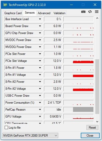 Во-первых, появилась возможность отслеживать энергопотребление видеокарт Nvidia по линиям: через слот PCI Express и отдельные разъёмы PCI-E Power. Добавлены графики потребляемой мощности только GPU, устройства, подключенного к порту USB Type-C (VirtualLink) на адаптерах Turing, и несколько других сенсоров.