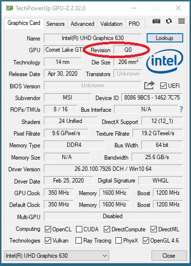 Во-вторых, GPU-Z научилась определять степпинг процессоров Intel Core 10-го поколения (Comet Lake-S). Эти CPU, напомним, доступны в двух ревизиях: Q0 и G1. В первом случае используется 10-ядерный кристалл, надежно припаянный к теплораспределительной крышке, а во втором — 6-ядерный чип и пластичный термоинтерфейс. Детальная информация по конкретным моделям процессоров приведена в таблице.