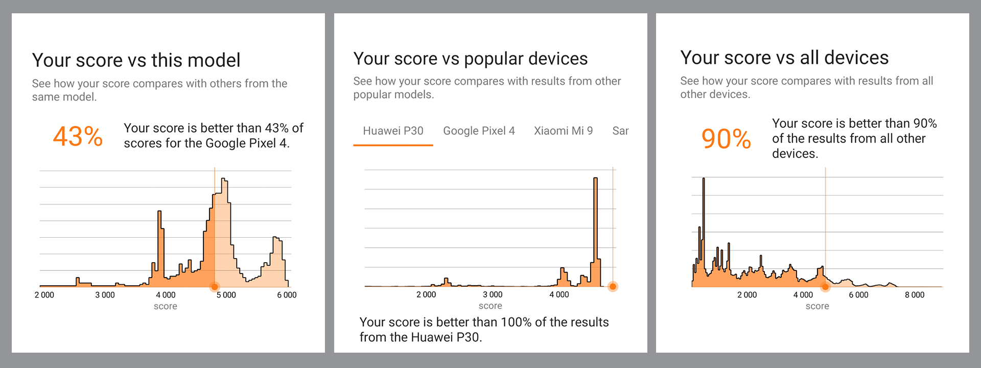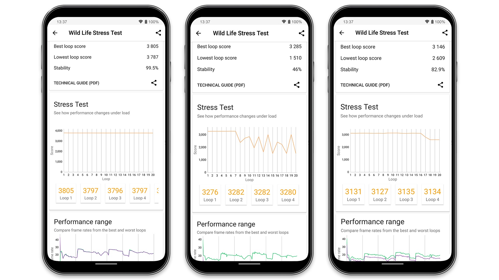 Wild Life предлагает два способа тестирования мобильных устройств: быстрый тест, который измеряет мгновенную производительность, и более длительный стресс-тест, который показывает, как ваш гаджет или ПК работает под большой нагрузкой. Для каждого устройства уникальная диаграмма показывает полный спектр результатов, представленных другими пользователями 3DMark по всему миру.