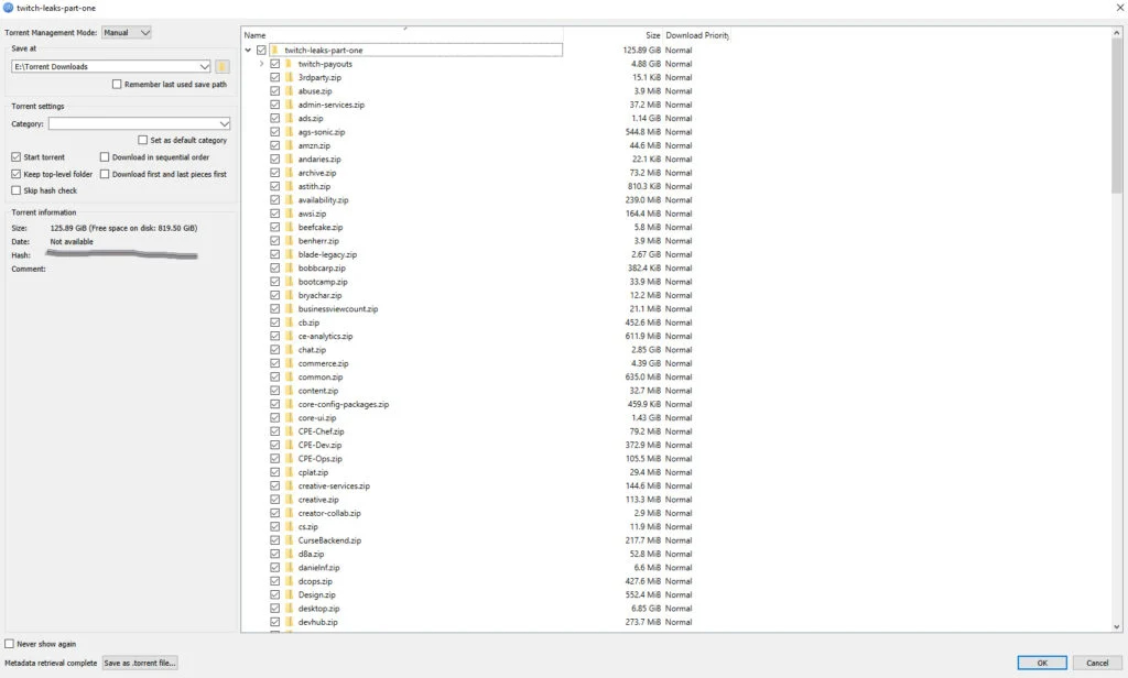 В интернете появился пакет файлов размером более 125 ГБ, содержащий конфиденциальные данные популярной стриминговой платформы Twitch. В его составе можно найти финансовую информацию, в том числе заработки авторов, исходные коды веб-сайта, мобильных и консольных приложений, пакеты SDK и другую внутреннюю информацию.