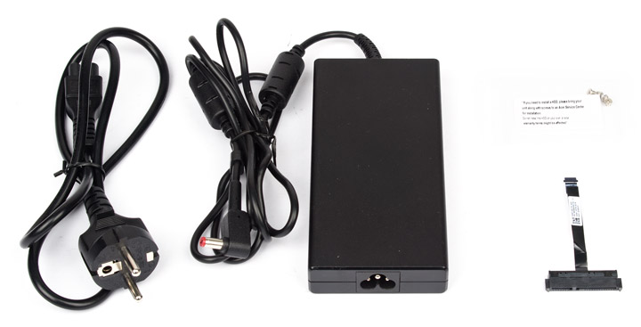 В комплект поставки входят блок питания, кабель питания, шлейф подключения дополнительного накопителя и набор винтиков.