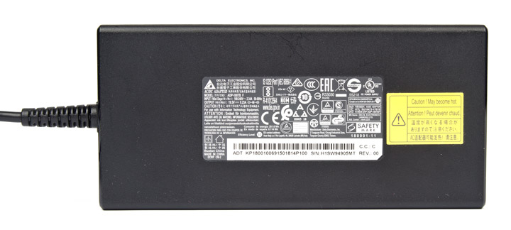 При подключении к электросети ноутбук питается от блока ADP-180TB F мощностью 180 Вт.