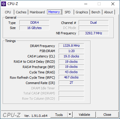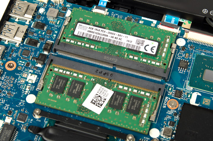 Установлено две планки памяти DDR4 по 8 ГБ Hynix HMA 81GS6JJR8N с эффективной частотой 2666 МГц.