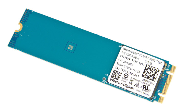 В нашей конфигурации установлен один накопитель Western Digital PC SN520 SDAPNUW-512G-1014 на 512 ГБ.
