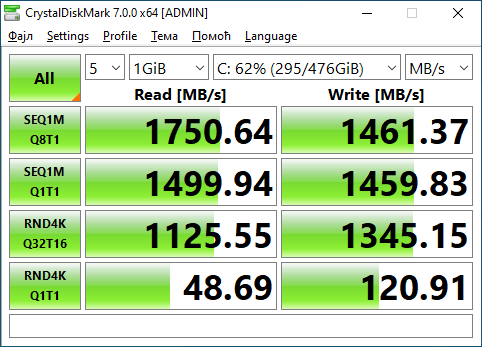 Тест накопителя из PCMark 8 показывает стандартный для данной категории устройств результат.