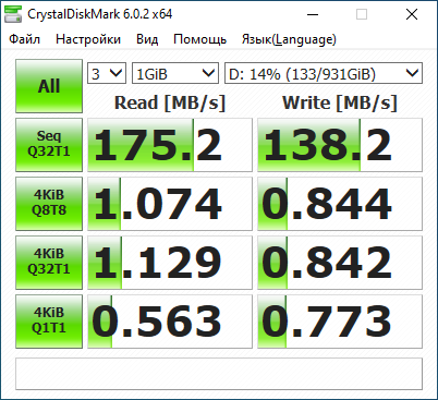 В приближенных к реальным сценариях нагрузки, имитированных бенчмарком PCMark 8 Storage, средняя скорость работы дисковой подсистемы составила 261,51 Мбайт/с.