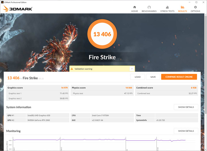 За счет использования экрана с разрешением 1920х1080 пикселей, запаса производительность графической подсистемы будет достаточно для достижения отметки в 60 fps или выше в большинстве современных игр. Об этом говорит результат бенчмарка 3DMark Time Spy, который составил 5678 баллов.