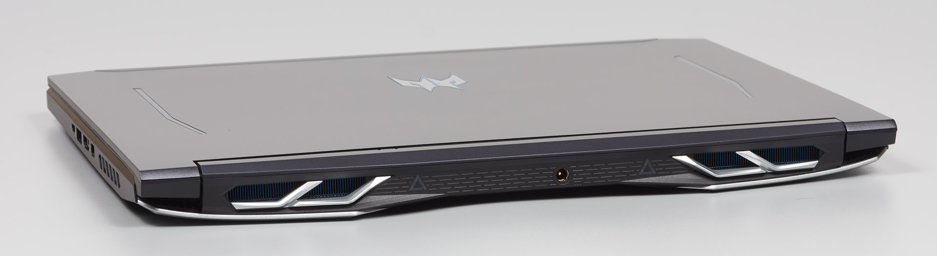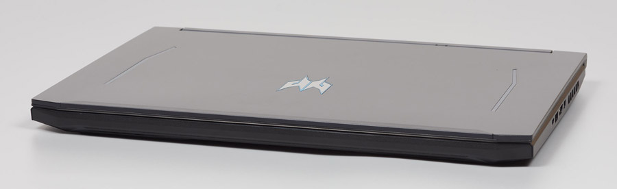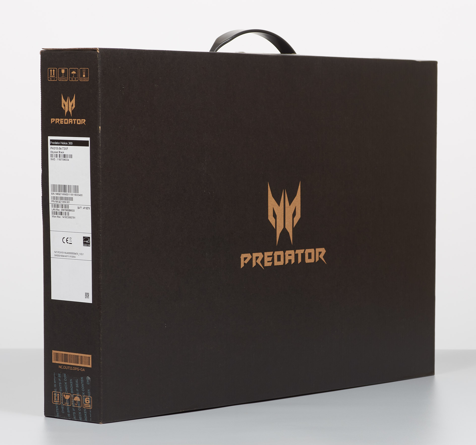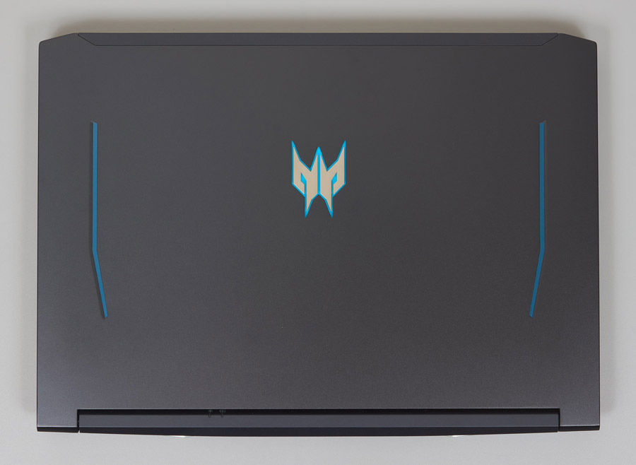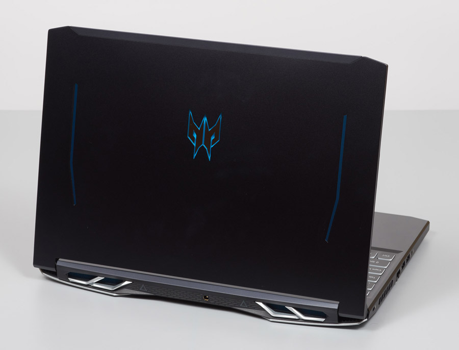 Ноутбук выполнен в стандартном дизайне и не отличается от прошлого поколения Acer Predator Helios 300. Это сочетание строгих форм и агрессивных очертаний задней части. С учетом выпирающих элементов полные габариты 363 x 260 x 23 мм при весе 2,3 кг.