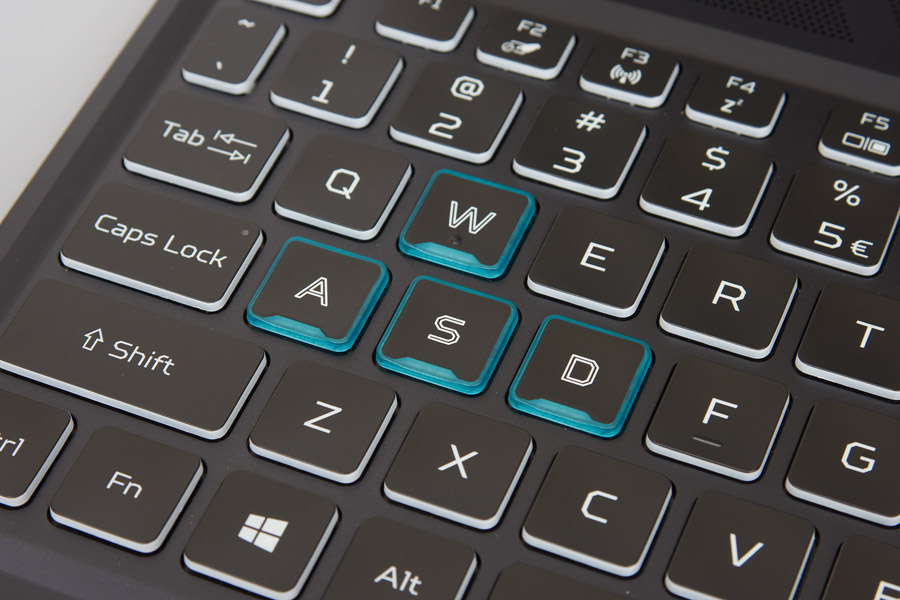 Кнопки WASD и стрелки имеют более крупную окантовку голубого цвета. Благодаря визуальному и тактильному выделению пользователю легче ориентироваться при быстром нажатии клавиш. Это один из элементов удобства для геймеров.
