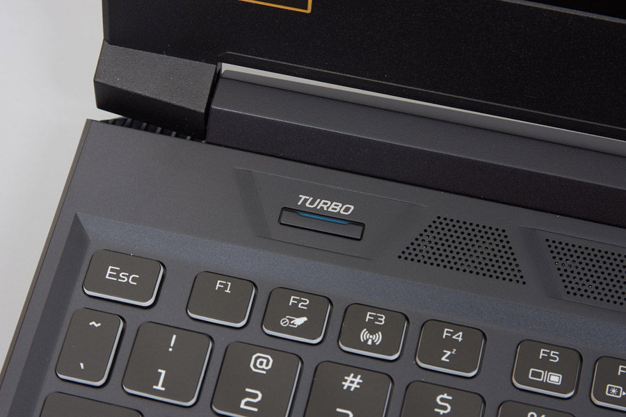 В левом углу расположена дополнительная кнопка Turbo для активации ускоренного режима с максимальным охлаждением. Также стоит отметить наличие небольшой перфорации корпуса над клавиатурой для дополнительного притока воздуха.