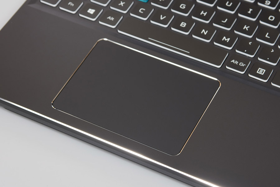 Тачпад с кнопками выполнен в виде единой панели с серебристой окантовкой.