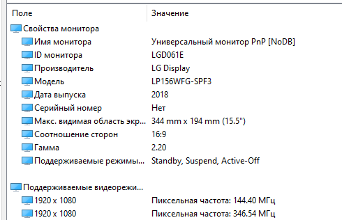 Используется IPS-матрица LG LP156WFG-SPF3 разрешением 1920x1080, частота обновления 144 Гц.