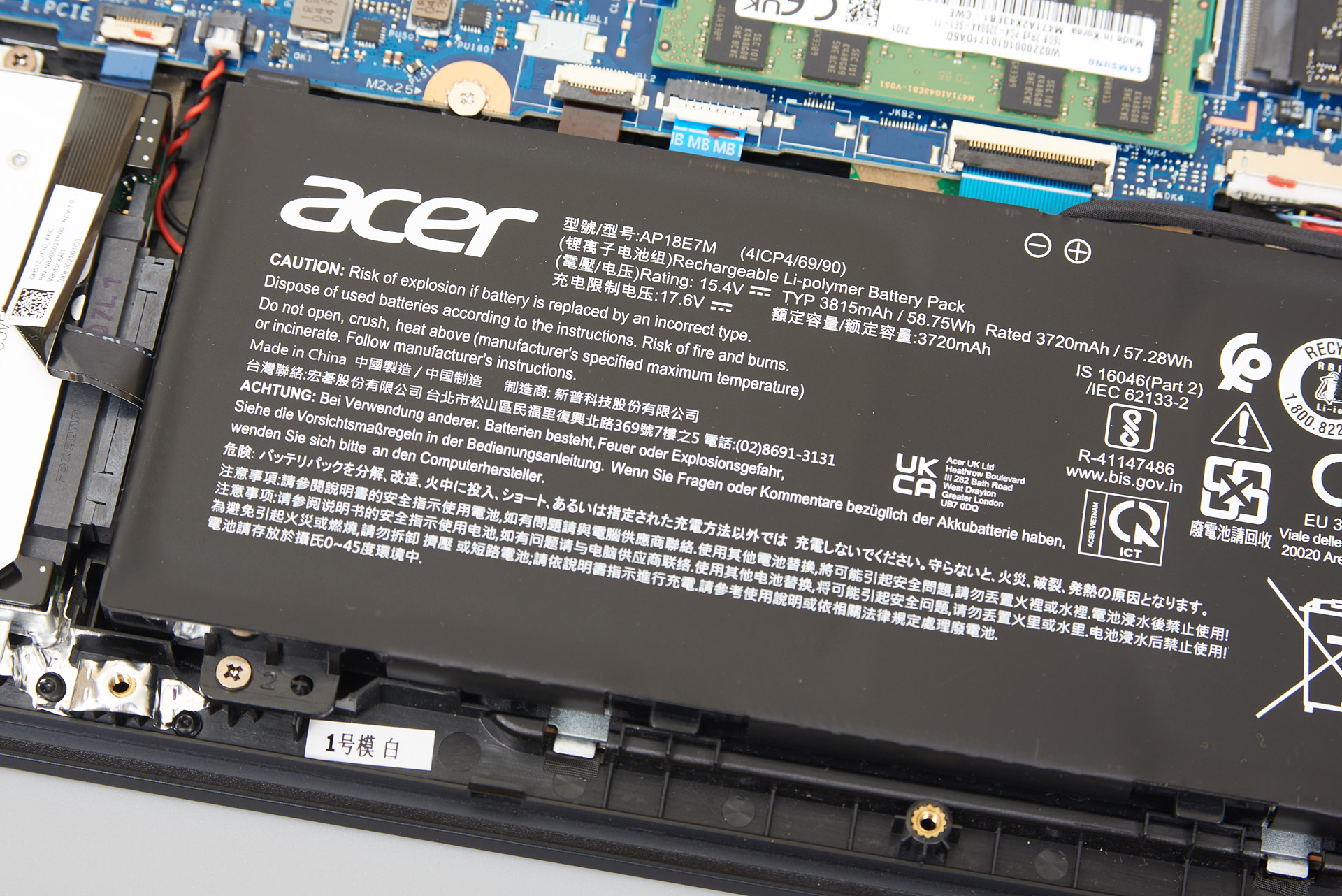 Нижнее пространство делят аккумулятор и жесткий диск. Это вынудило производителя немного сэкономить на батарее и установить аккумулятор на 58,7 Вт·ч.