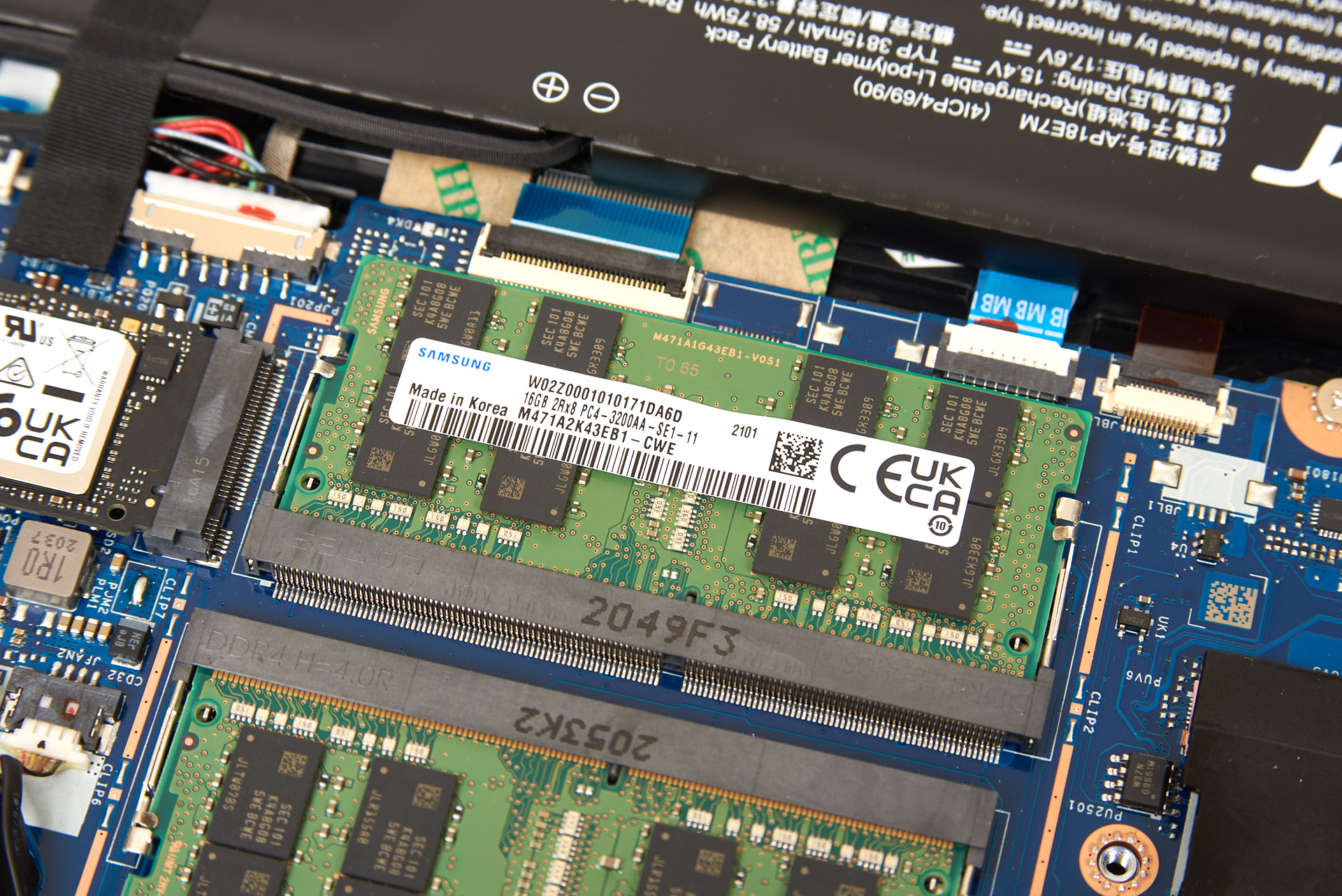 В два слота памяти установлены планки DDR4-3200 от Samsung.