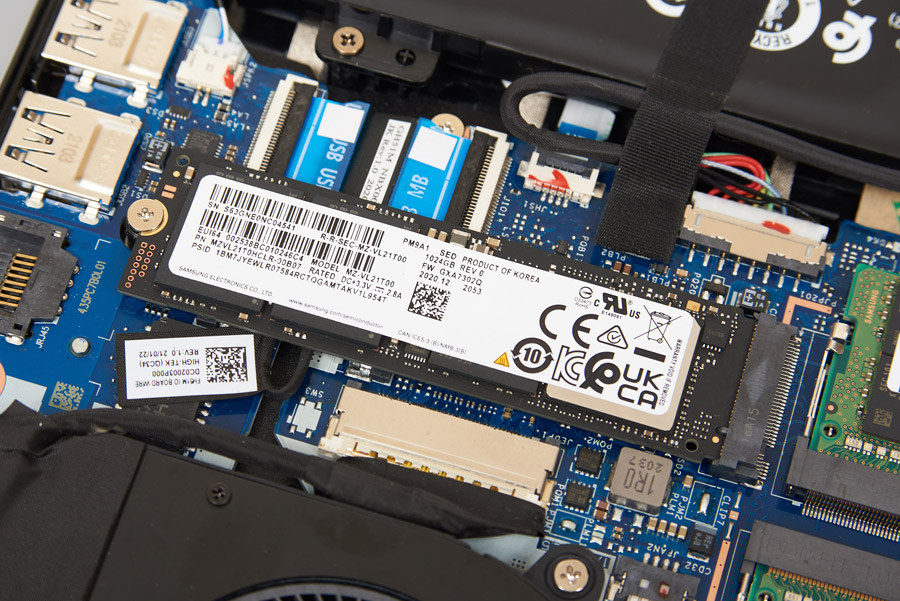 Установлены два накопителя NVMe M.2. Samsung MZVL21T0HCLR-00B07 объемом 1 ТБ. Они работают в режиме RAID 0 для повышения производительности.