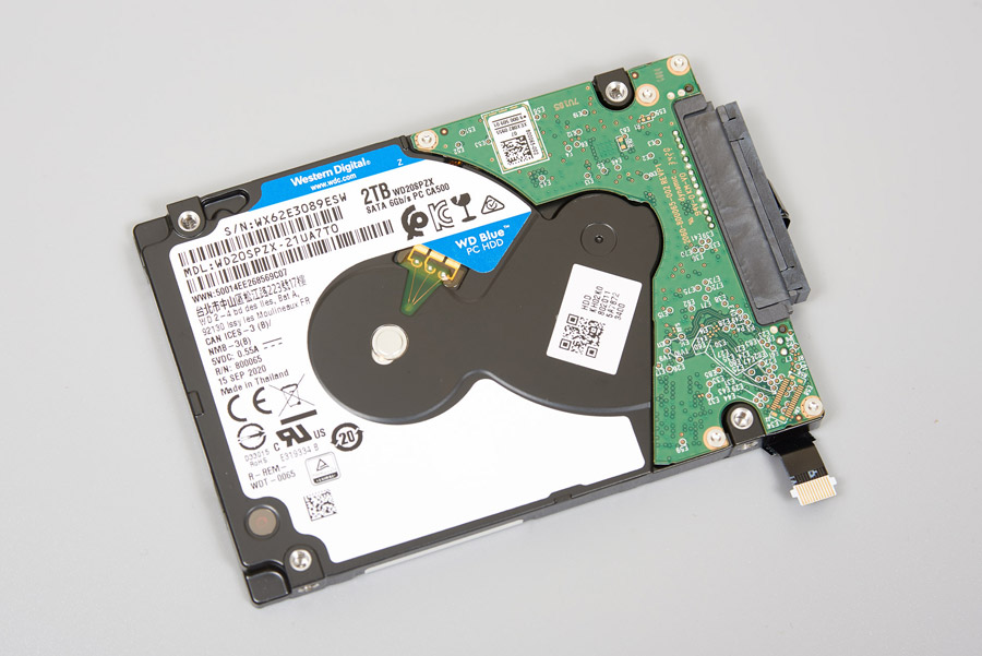 В качестве дополнительного хранилища данных задействован жесткий диск Western Digital WD20SPZX-21UA7TO объемом 2 ТБ.
