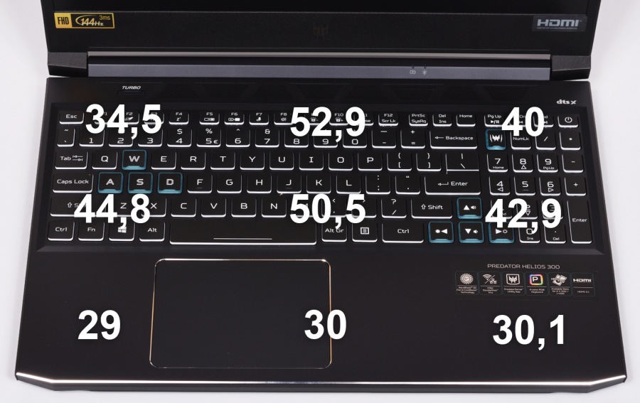 Acer Predator Helios 300 легко обеспечивает комфортную производительность в стандартном рабочем режиме.