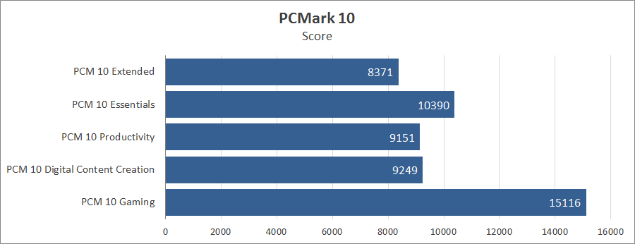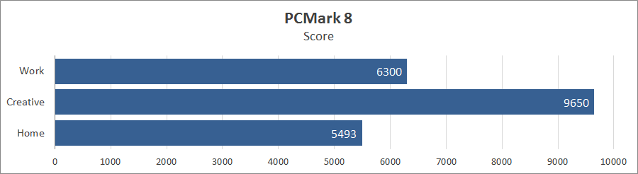 В старом PCMark ноутбук показывает высокие результаты во всех тестах.