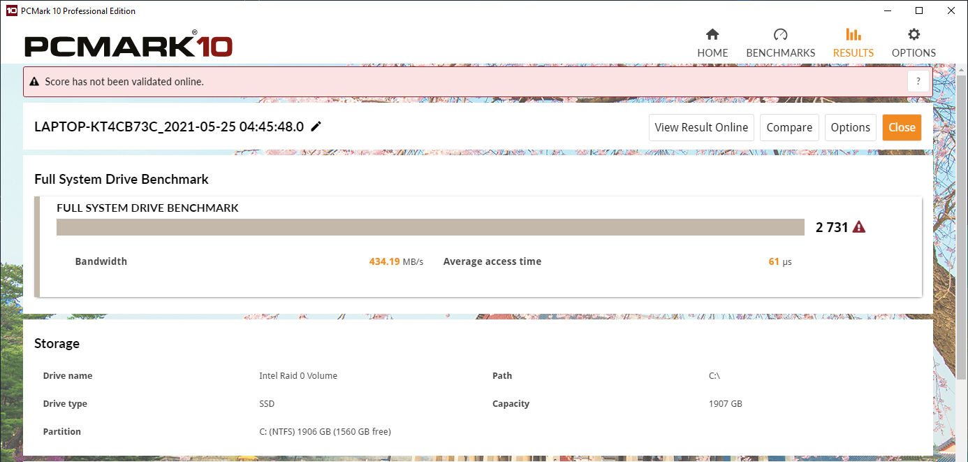 Итоговый результат в тесте накопителя PCMark 10 достиг 2731 баллов, что очень много.