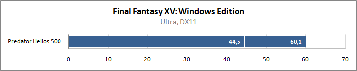 Длительная нагрузка бенчмарком Final Fantasy XV: Windows Edition позволяет оценить нагрев ноутбука в игровом режиме. Среди протестированных ранее моделей часто именно видеокарта была самым горячим элементом, увеличивая и общий нагрев ноутбука. Посмотрим, как проявит себя Predator Helios 500.