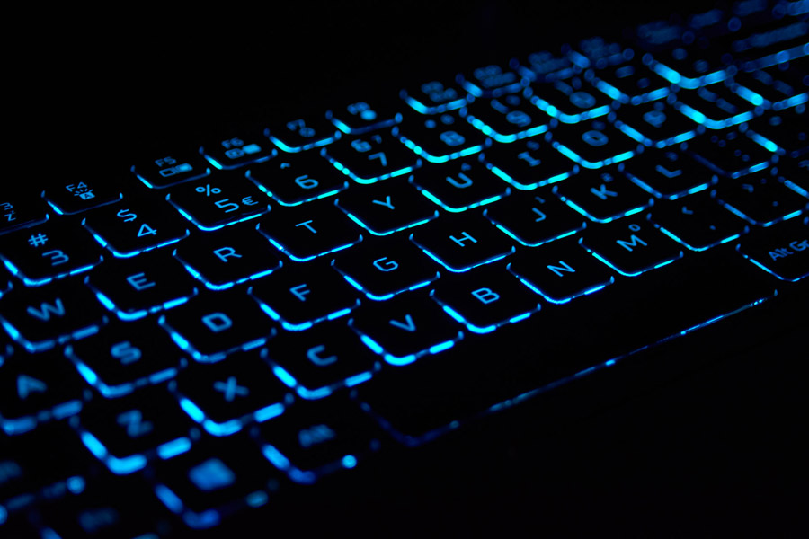 По умолчанию клавиатура имеет равномерную синюю подсветку. Предусмотрена возможность программной настройки с индивидуальными параметрами свечения для трех зон клавиатуры.