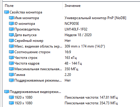 | Дисплей | 14", 1920x1080, 144 Гц (LM140LF-1F02) |