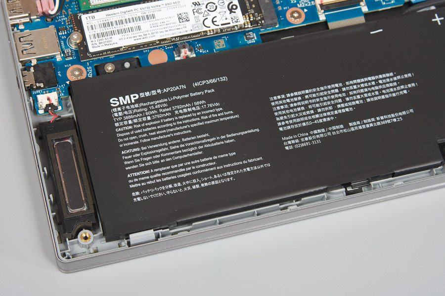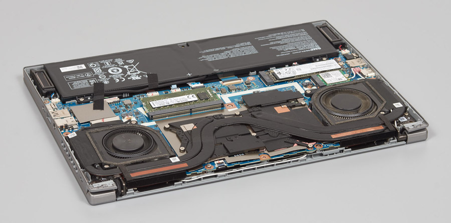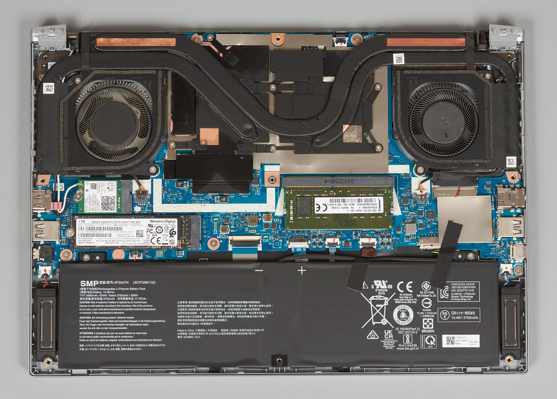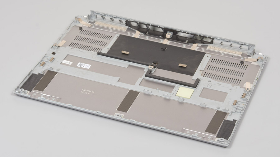 Разберем ноутбук. Нижняя крышка имеет много опорных точек и гибкие прокладки, чтобы избежать деформации и изгибов корпуса.