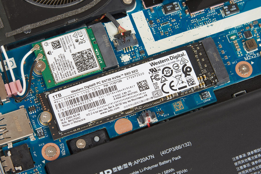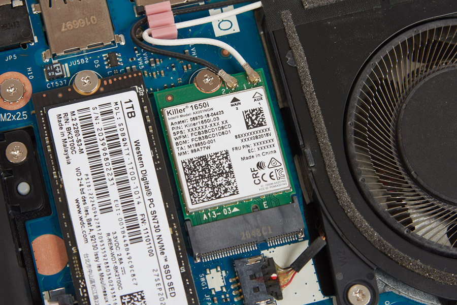Работу беспроводных интерфейсов Wi-Fi 6 и Bluetooth 5.2 обеспечивает контроллер Intel Killer Wi-Fi 6 AX1650i 201NGW.