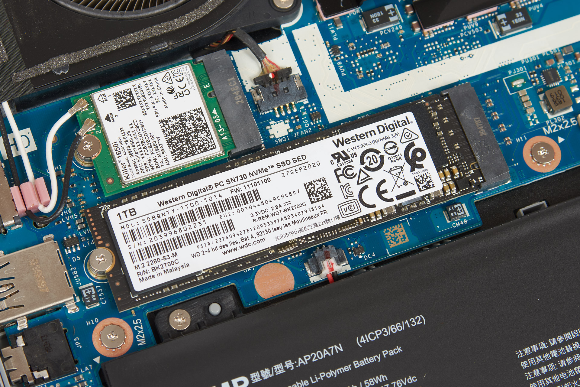 Установлен накопитель NVMe M.2 Western Digital SN730 SDBQNTY-1T00-1014 объемом 1 ТБ с интерфейсом 4x PCI-E 3.0.