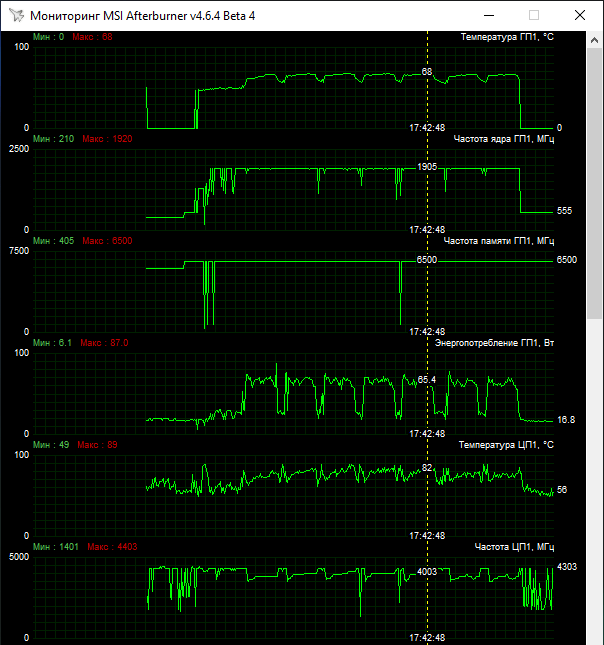 Теперь поговорим о рабочих температурах и проверим частотные показатели в нагрузке.