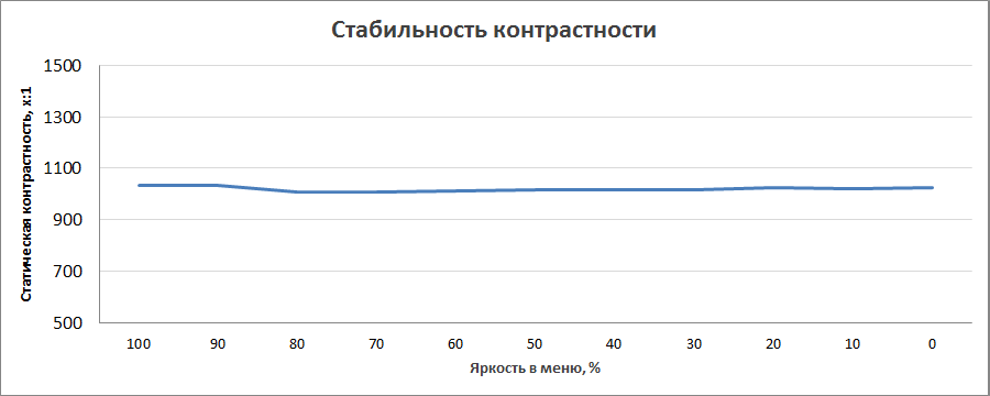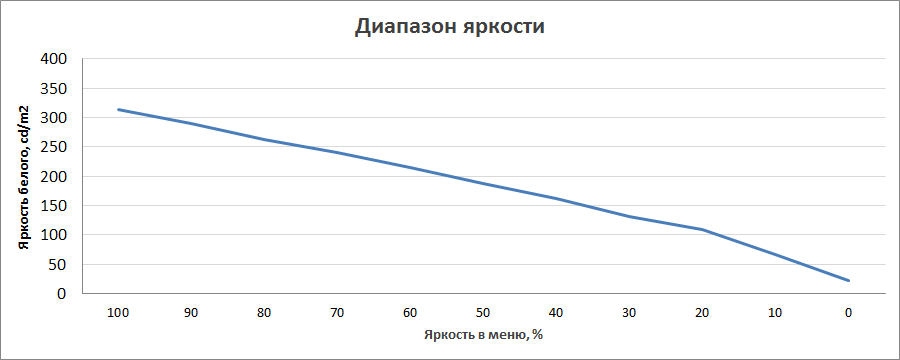 Яркость регулируется в диапазоне от 22 до 313 кд/м². Коэффициент контрастности на уровне 1020:1. Все последующие измерения проводились при яркости в 120 кд/м².