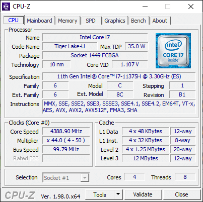 Acer Predator Triton 300 SE PT314-51S использует мобильный процессор Intel Core i7-11375H семейства Tiger Lake на техпроцессе 10 нм. Он насчитывает четыре ядра с Hyper-Threading, что позволяет обрабатывать восемь потоков, TDP до 35 Вт. Память DDR4-3200 работает в двухканальном режиме с задержками 22-22-22-52-1T.