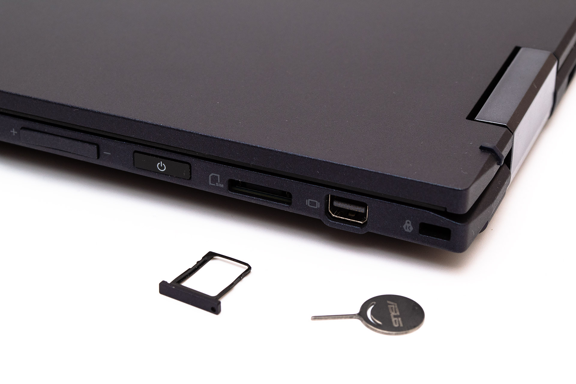 С правой стороны есть еще один порт USB 3.2 Gen 2 Type A, качели регулировки громкости, кнопка запуска системы со встроенным сканером отпечатков пальцев, лоток под Nano SIM, mini DisplayPort и разъем под Kensigton nanolock. Чуть ниже находится щель считывателя смарт-карты.