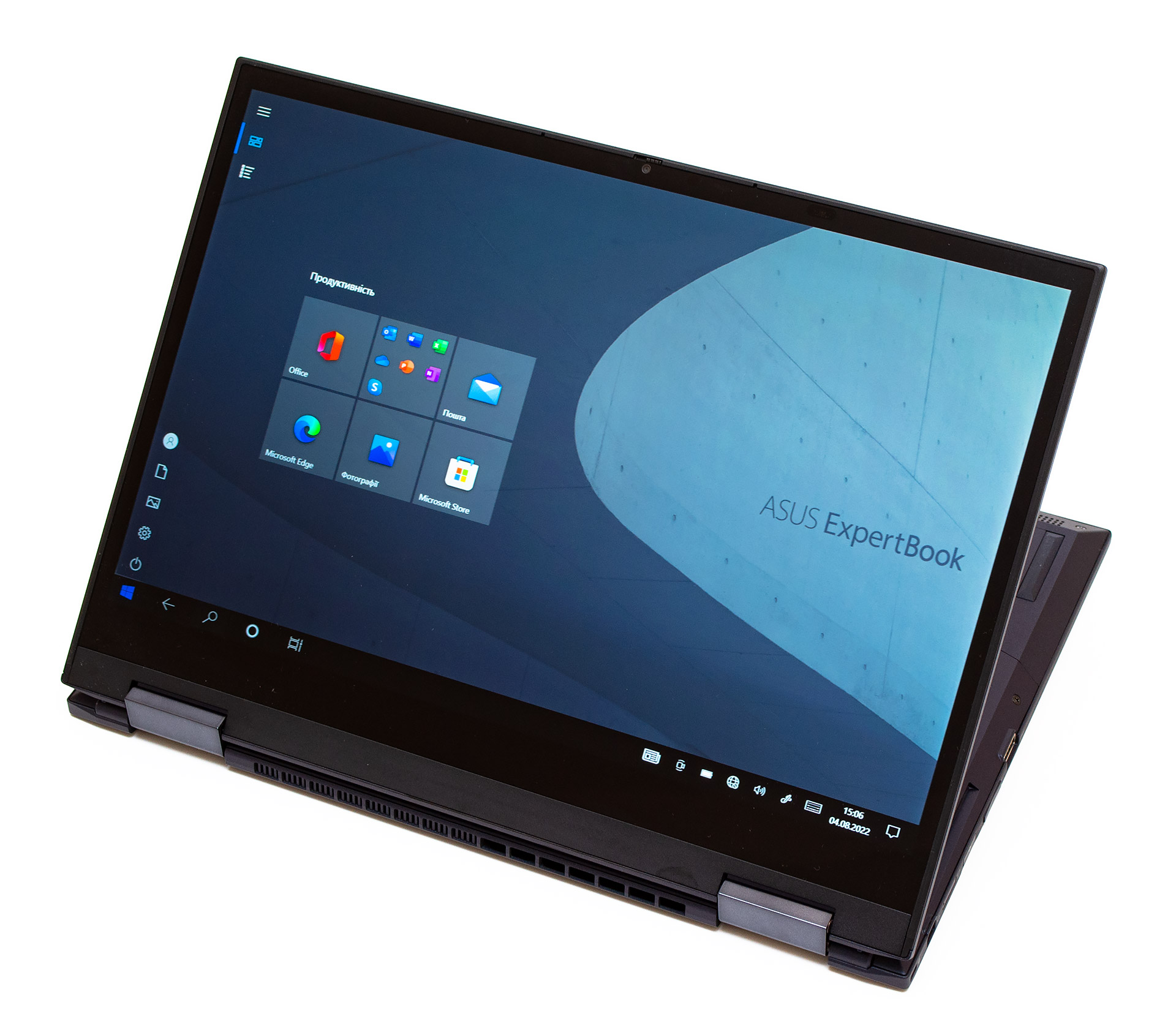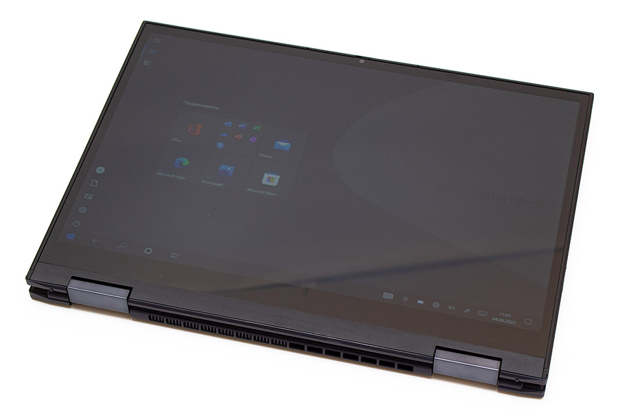 ASUS ExpertBook B7 Flip имеет несколько режимов работы в зависимости от угла наклона дисплея. До 180 градусов включительно работает как обычный ноутбук. При наклоне более 110 градусов от горизонтали нижняя часть поднимается, опираясь на нижние подставки дисплея. Эта технология называется ErgoLift, благодаря ей улучшается охлаждение и создается более насыщенный звук вследствие образования камеры относительно поверхности стола.
