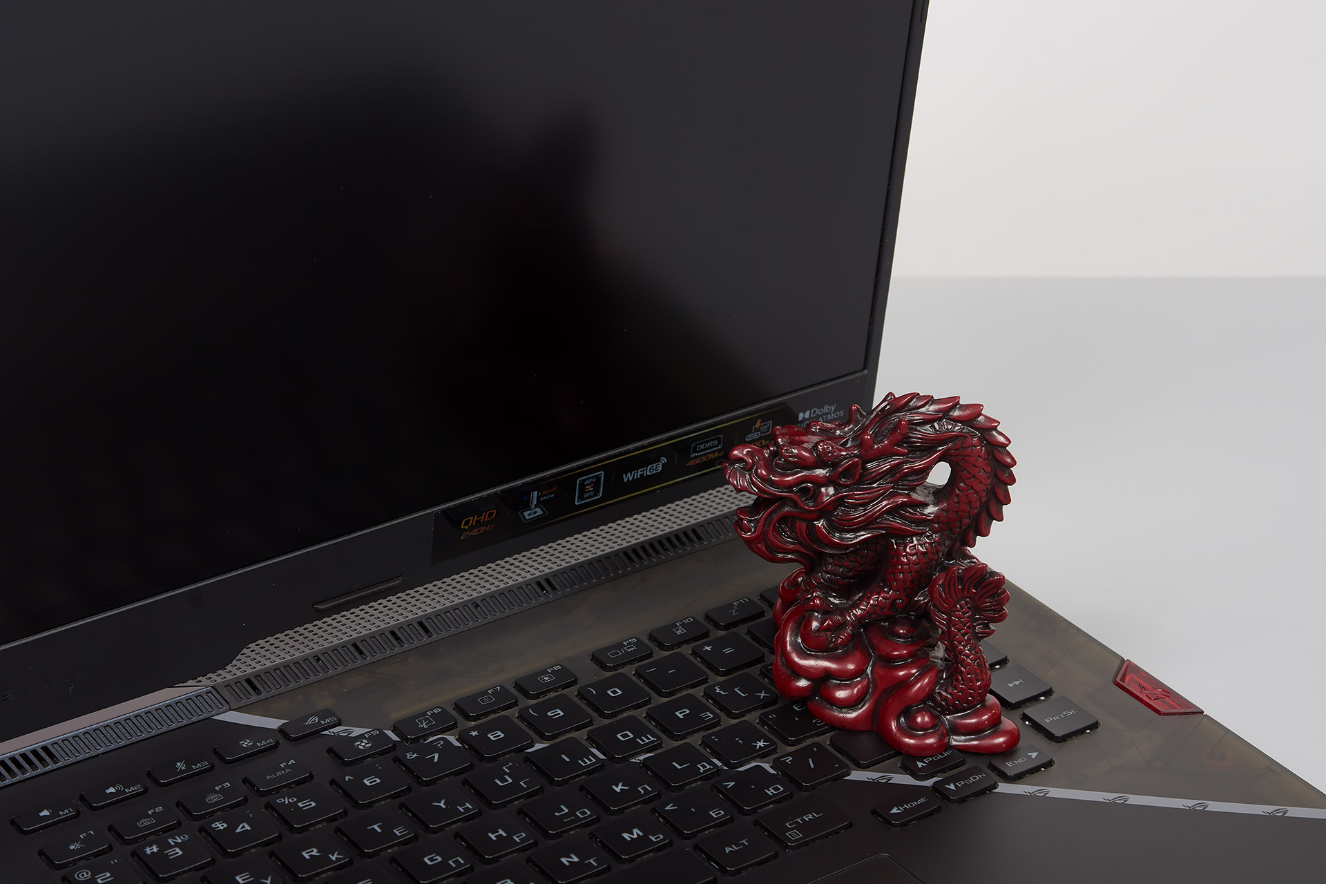 ROG Strix Scar 15 G533 лишен веб-камеры, так что придется покупать ее отдельно. Экран имеет тонкие рамки и кажется, будто у него их нет совсем.
