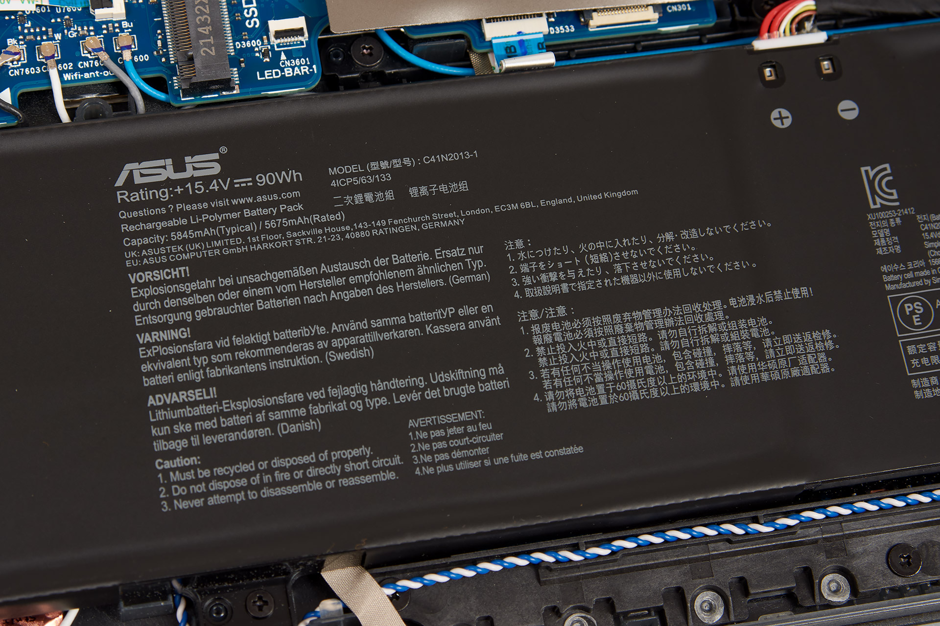 В нижней части корпуса установлен аккумулятор на 90 Вт·ч.