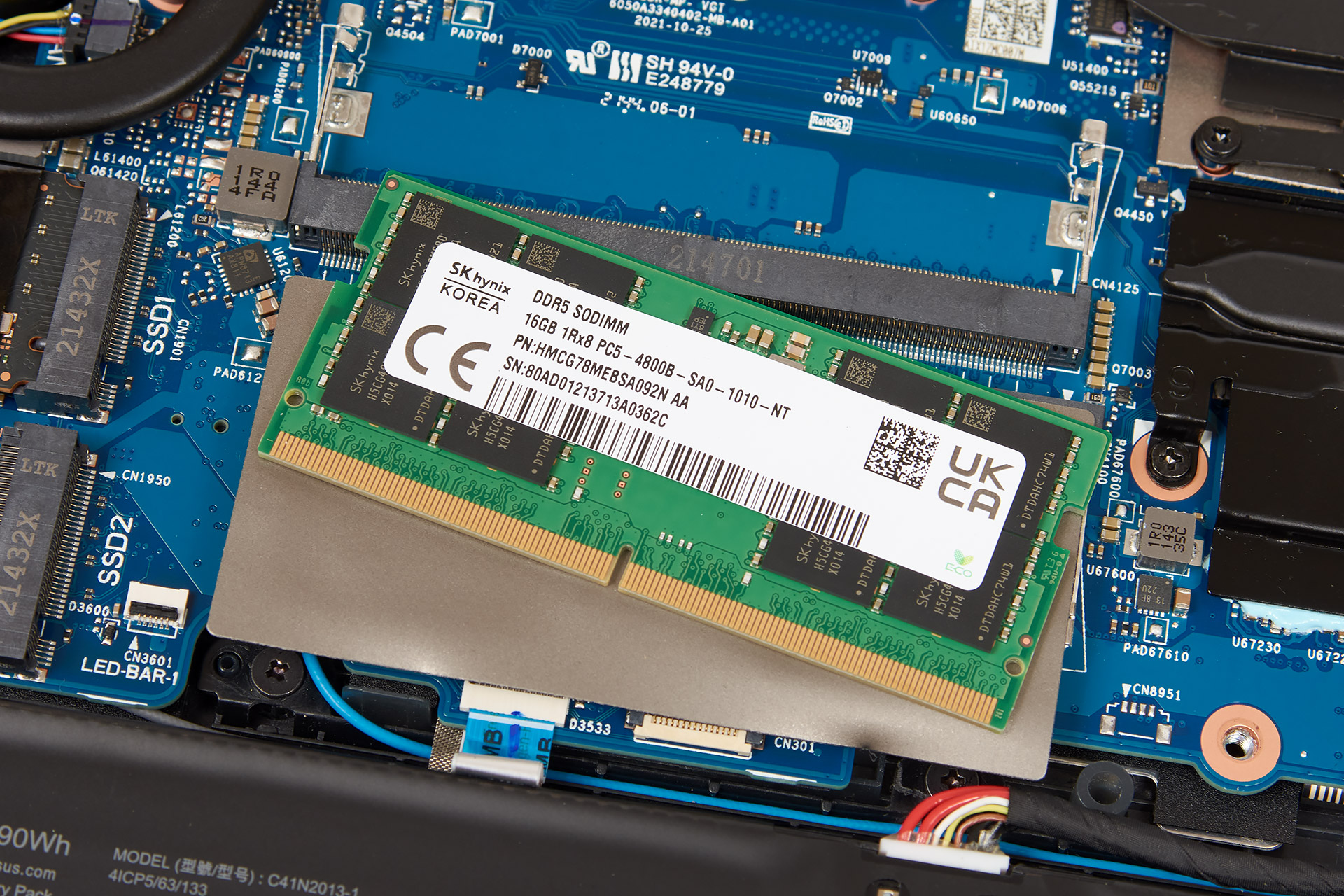 Два слота памяти заняты модулями SO-DIMM стандарта DDR5-4800 производства SK Hynix.