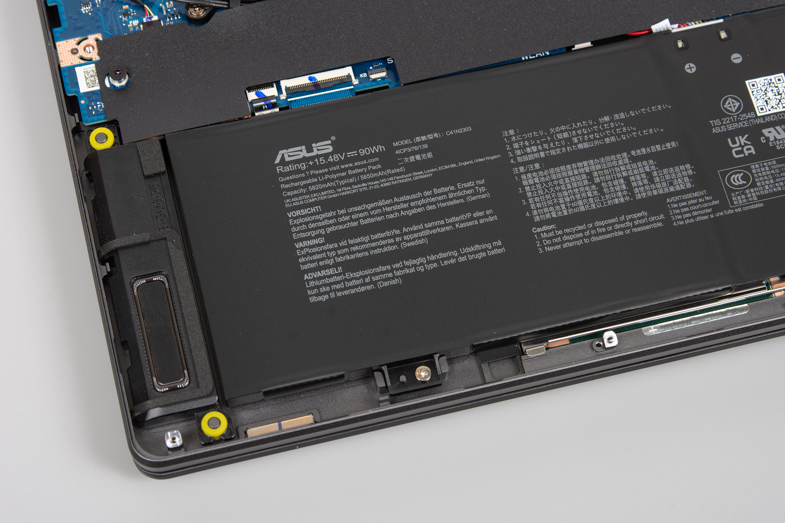 Установленный аккумулятор очень мощный, как для таких размеров лэптопа, имеет емкость в 5820 мА·ч при напряжении 15,48 В, а это уже равно 90 Вт·ч. Часто производители ставят худшие батареи даже в более крупные модели.