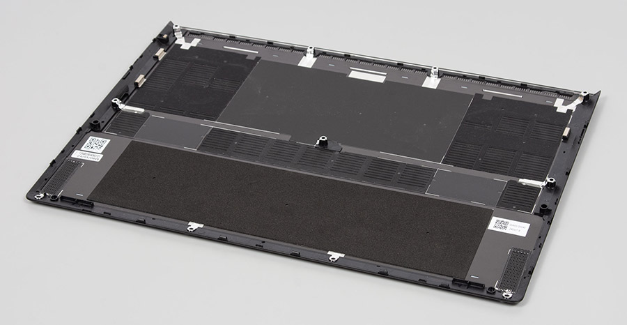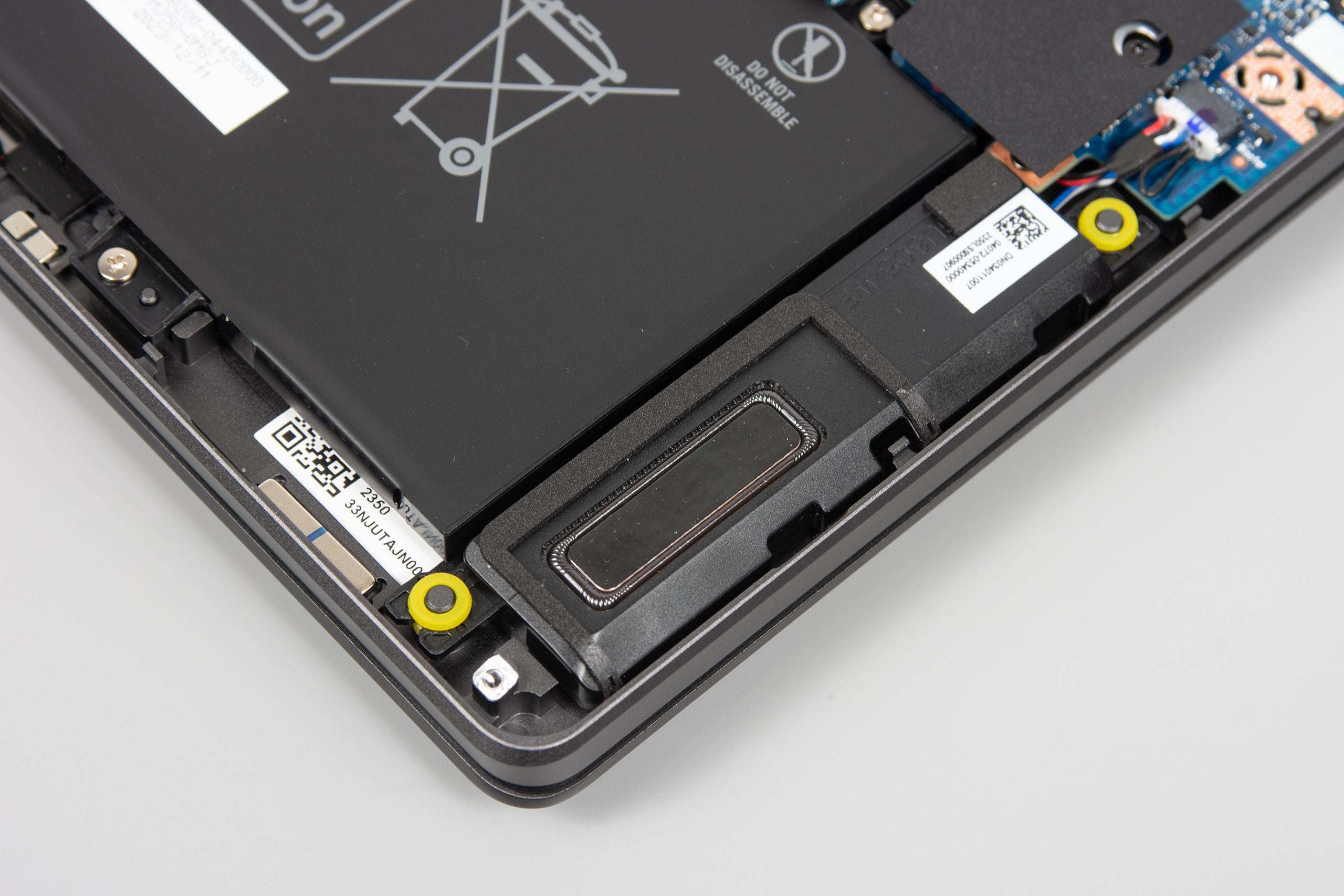 По углам в передней части ноутбука находятся низкочастотные динамики в своих капсюлях, в то время как высокочастотные громкоговорители установлены на рабочей поверхности у клавиатуры.